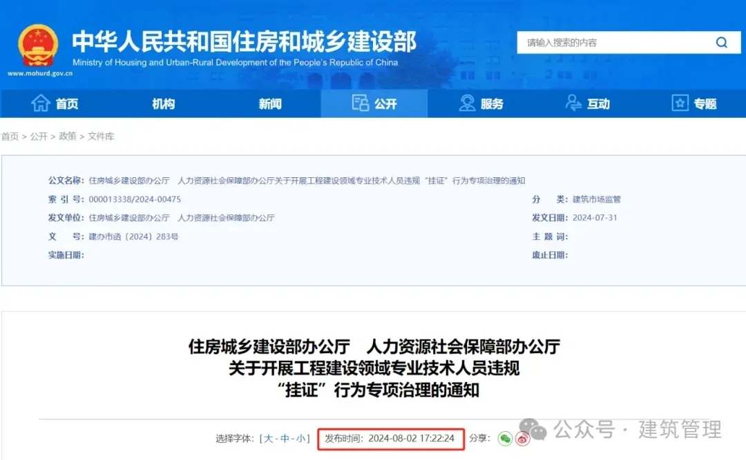 为严厉打击工程建设领域专业技术人员注册执业资格违规“挂证”现象,维护建筑市场秩序,保障工程质量安全,促进建筑业高质量发展,住房城乡建设部、人力资源社会保障部决定开展工程建设领域专业技术人员“挂证”等违法违规行为专项治理(以下简称专项治理)。现将有关事项通知如下:严肃查处工程建设领域勘察设计注册工程师、注册建筑师、建造师、监理工程师、造价工程师等专业技术人员注册单位与实际工作单位不一致,出租出借注册执业资格证书等“挂证”违法违规行为。地方各级住房城乡建设、人力资源社会保障部门负责组织本行政区域内自查自纠工作,指导、督促本地区工程建设领域专业技术人员及勘察、设计、施工、监理、造价咨询等相关单位开展自查自纠。相关专业技术人员和单位要对照有关法律法规,对是否存在“挂证”等违法违规行为进行自查,存在相关问题的,应及时办理注销等手续。对在自查自纠期间及时整改到位的人员和单位,可视情况不再追究其相关责任。(二)排查处理阶段(2024年11月至2025年2月)1.全面排查。地方各级住房城乡建设、人力资源社会保障部门组织开展全面排查,结合社保缴费、住房公积金缴存等信息对本地区工程建设领域专业技术人员进行全面比对排查,重点核查注册单位与社保缴纳、住房公积金缴存单位不一致等情况。2.严肃处理。地方各级住房城乡建设、人力资源社会保障部门对排查出的问题要及时调查核实。对存在“挂证”等违法违规行为的,依法依规予以处罚。对排查中发现人员挂靠问题突出的单位,要依据有关法律法规,对其承建项目的主要管理、技术人员到岗履职情况进行排查,并依法严肃处理。(一)强化组织实施。地方各级住房城乡建设、人力资源社会保障部门要高度重视专项治理工作,强化组织领导,加强沟通协调,明确责任分工,制定具体工作方案,落实责任部门和责任人,确保专项治理工作取得实效。要积极利用信息化等手段,加大对专业技术人员、相关单位等违法违规行为的排查力度。(二)依法从严查处。地方各级住房城乡建设部门要按照全覆盖、零容忍、严执法、重实效的原则,依法从严查处工程建设领域专业技术人员“挂证”等违法违规行为。对违规“挂证”人员依法依规撤销其注册许可,3年内不得再次申请注册,对违规使用“挂证”人员的单位予以公开,并纳入资质动态核查;对违规的中介服务机构要依法严肃查处,责令限期整改,情节严重的,依法给予行政处罚。对发现存在“挂证”等违法违规行为的国家机关和事业单位工作人员,告知其实际工作单位。各地专业技术人员执业资格注册管理机构、工程造价管理机构在专项治理工作中要严肃工作纪律,严格遵守各项管理规定,及时快捷办理注销等手续,保障专项治理期间各项注册工作有序进行。涉及到注册建筑师的具体工作,由省级住房城乡建设、人力资源社会保障部门指导本地区注册建筑师管理委员会,按照《中华人民共和国注册建筑师条例》和本通知要求开展。(三)强化信息公开。地方各级住房城乡建设、人力资源社会保障部门应公布投诉举报方式,要逐一登记、认真查处投诉举报事项;要充分发挥建筑市场监管公共服务平台和相关信用信息平台作用,对被查处存在违法违规行为的单位和人员,在平台中记录其不良行为,并向社会公布,加强失信惩戒和社会监督。(四)加强舆论引导。地方各级住房城乡建设、人力资源社会保障部门要加大教育引导和宣传力度,充分运用典型案例进行警示教育,提高专业技术人员、有关单位、人力资源服务机构对“挂证”等违法违规行为危害性的认识,形成全行业自觉抵制“挂证”的氛围。(五)完善长效机制。地方各级住房城乡建设、人力资源社会保障部门对专项治理工作要进行全面总结,认真梳理分析发现的问题,充分总结经验,及时将行之有效的经验做法提炼上升为制度性文件。同时,结合地区实际,推动用人单位建立完善合理的人才培养与梯队建设制度,形成预防、查处和监管的长效机制。请各省级住房城乡建设部门会同人力资源社会保障部门及时总结本地区专项治理工作情况并填写处理情况汇总表(见附件),形成工作报告,于2025年2月28日前报送住房城乡建设部、抄送人力资源社会保障部。住房城乡建设部、人力资源社会保障部将加强对各地专项治理工作的指导,对部分地区开展现场调研,通报各地工作进展。